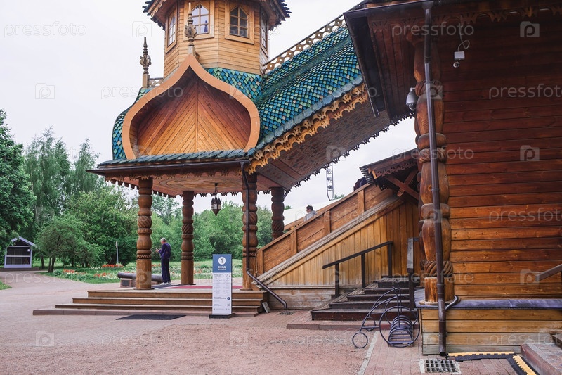 Городской ландшафт. Популярная туристическая достопримечательность. Визитная карточка Москвы. Деревянный дворец царя Алексея Михайловича в Коломенском. Россия, Москва, май 2023 г