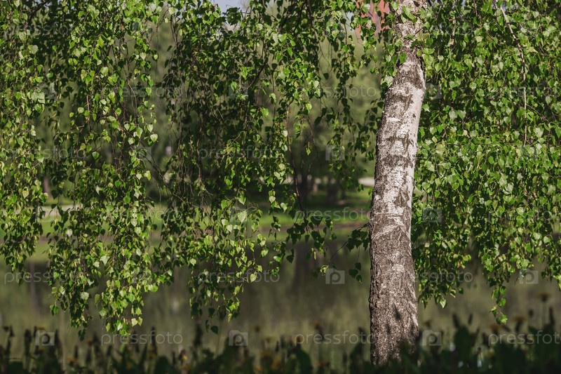 Русская природа и культура. Красивый фон стволов березы, текстура дерева. Береза с цветущими листьями ранней весной