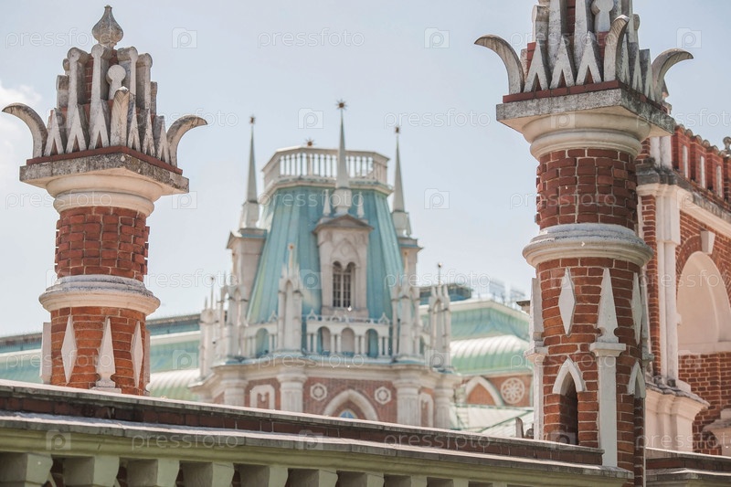 Россия. Фасонный мост в Царицынском парке в Москве летом. Царицынский парк — одна из главных туристических достопримечательностей Москвы. Россия, май 2023 г