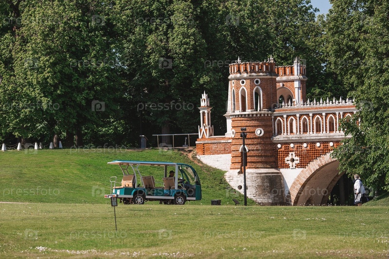 Россия. Фасонный мост в Царицынском парке в Москве летом. Царицынский парк — одна из главных туристических достопримечательностей Москвы. Россия, май 2023 г