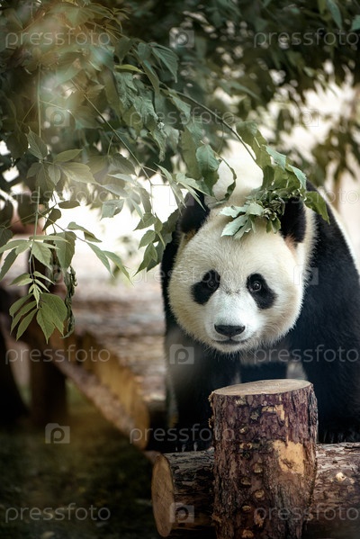 Гигантская панда смотрит в камеру