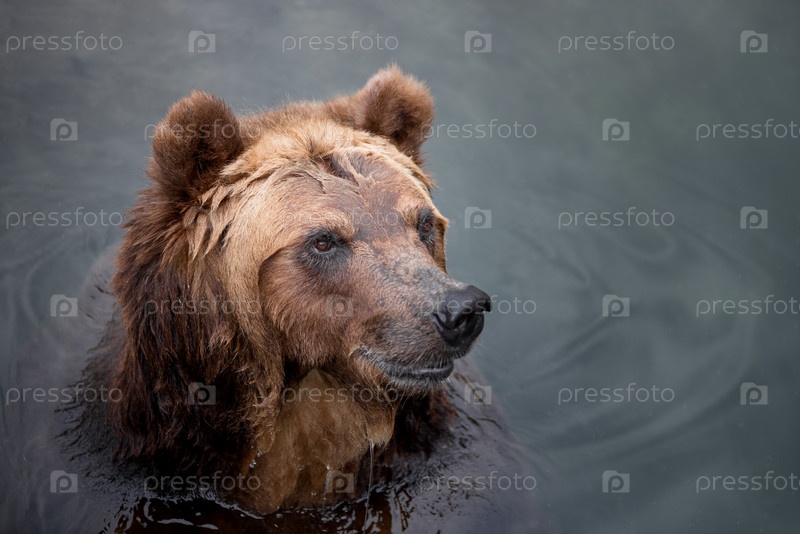 Бурый медведь плавает в реке