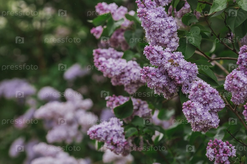 Пушистая, цветущая сирень. Красивый цветочный фон. Большие гроздья сирени