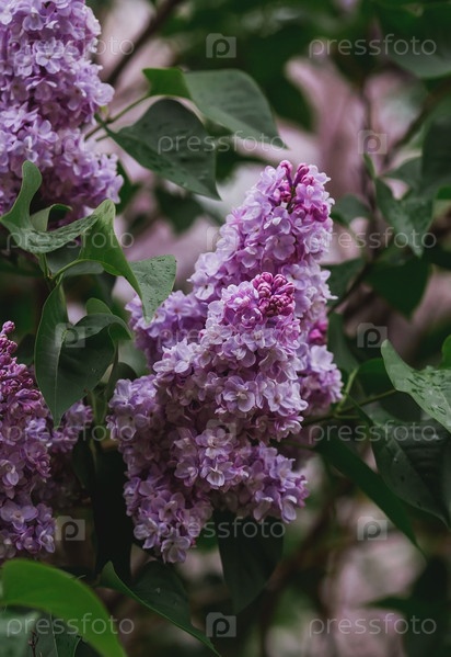 Пушистая, цветущая сирень. Красивый цветочный фон. Большие гроздья сирени