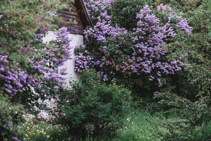 Пушистая, цветущая сирень. Красивый цветочный фон. Большие гроздья сирени