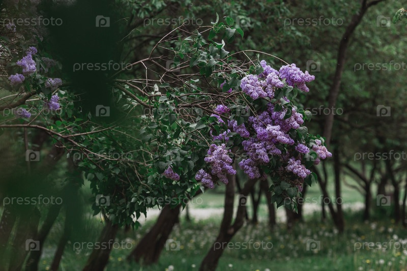 Пушистая, цветущая сирень. Красивый цветочный фон. Большие гроздья сирени