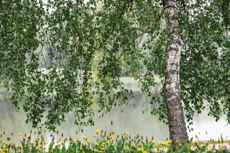 Русская природа и культура. Красивый фон стволов березы, текстура дерева. Береза с цветущими листьями ранней весной