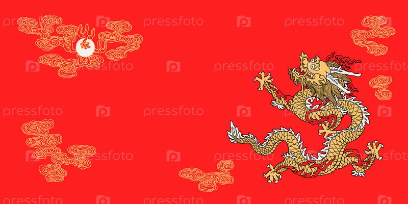 Китайский дракон в погоне за жемчужиной на красном фоне