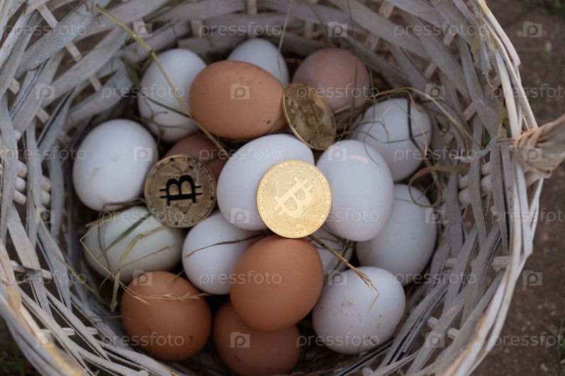 Биткойн в корзине с яйцами