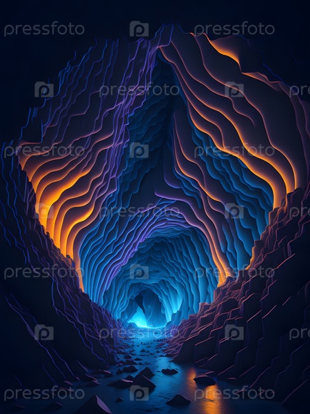 Светящийся хрустальный пещерный туннель, искусство, созданное нейронной сетью
