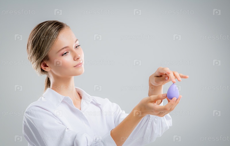 Милая красивая натуральная брюнетка очищает лицо хлопковой губкой, улыбаясь, глядя в камеру на белом фоне. Косметология и спа