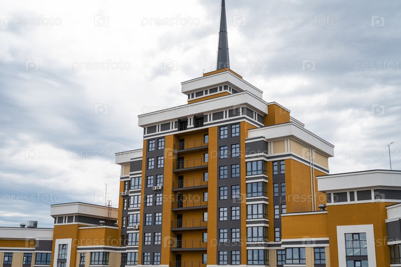 Новое современное здание с видом на центр Барнаула. Сибирь, Россия. Осенний день красоты, Алтайский край, Сибирь, Барнаул, Россия