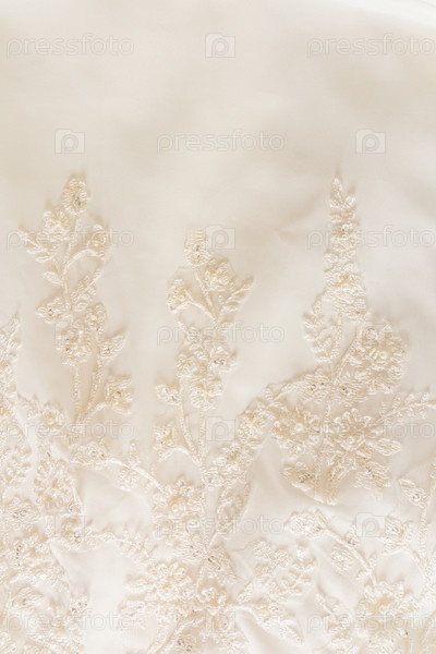 Вертикальный свадебный фон части свадебного платья невесты цвета шампанского с красивой вышивкой бисером. Копия пространства