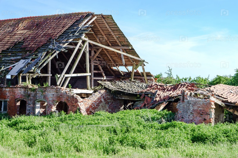 Старый разрушенный дом. Дом из красного кирпича