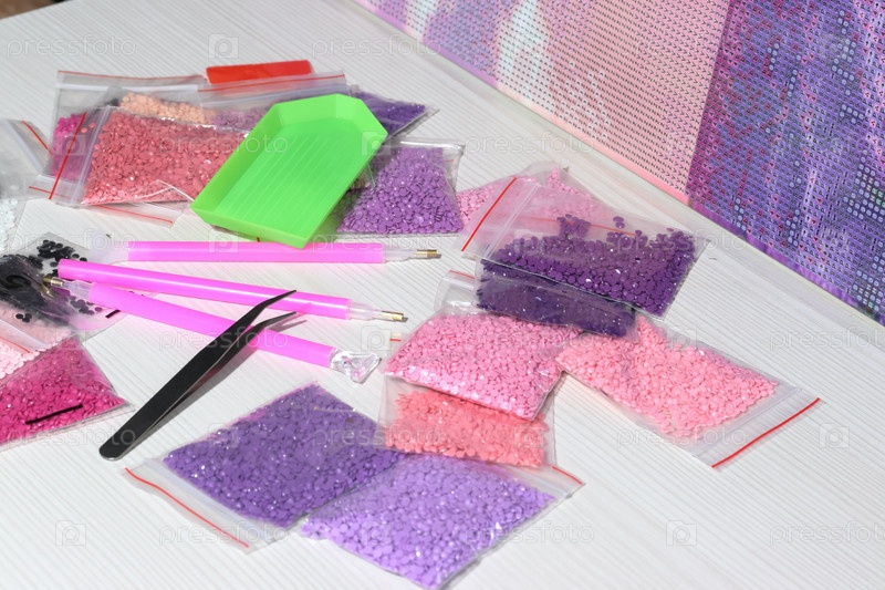 Набор для картины из страз. Алмазная мозаика. Сумки со стразами и инструментами