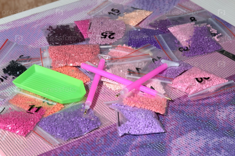 Набор для картины из страз. Алмазная мозаика. Сумки со стразами и инструментами