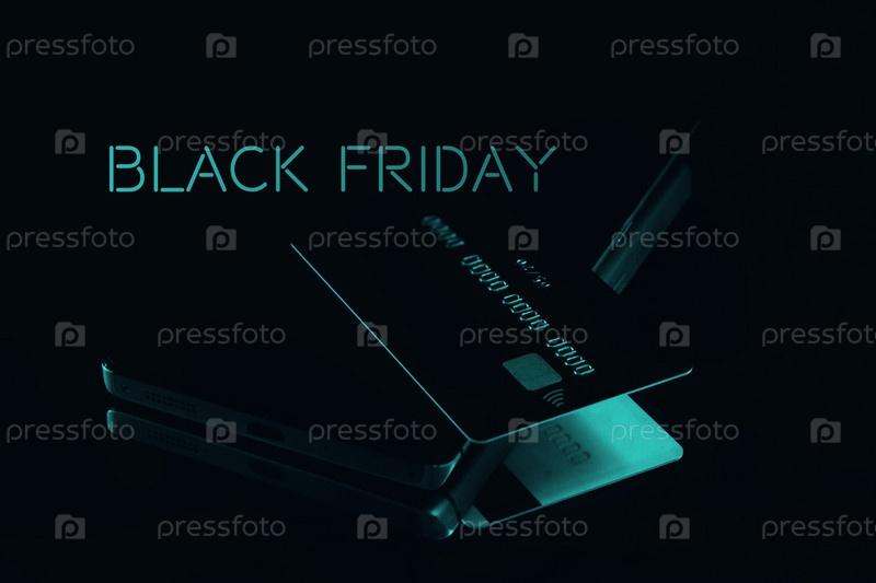 Кредитная карта на мобильном телефоне крупным планом на монохроматическом фоне, снятая с небольшой глубиной резкости