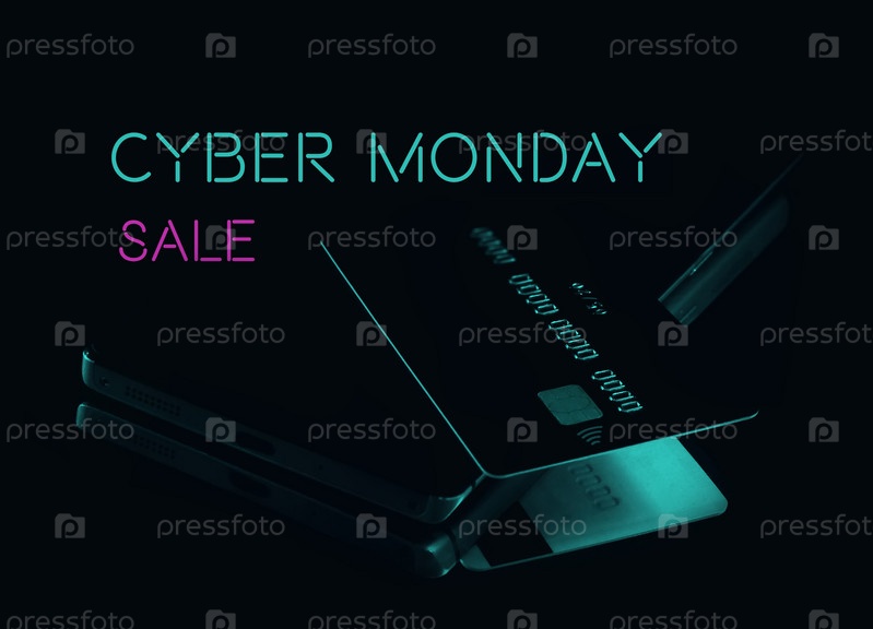 Кредитная карта на мобильном телефоне крупным планом на монохроматическом фоне, снятая с небольшой глубиной резкости