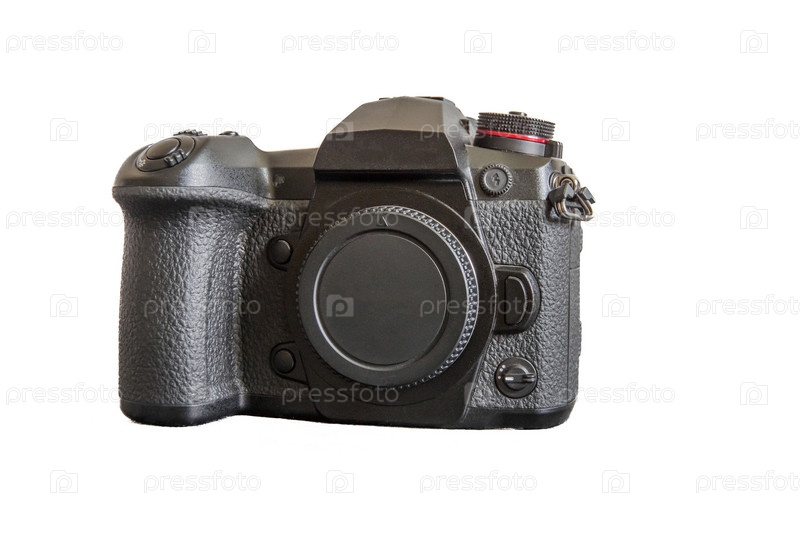 Японская беззеркальная цифровая камера Micro Four Thirds. передний план. изолированные на белом фоне
