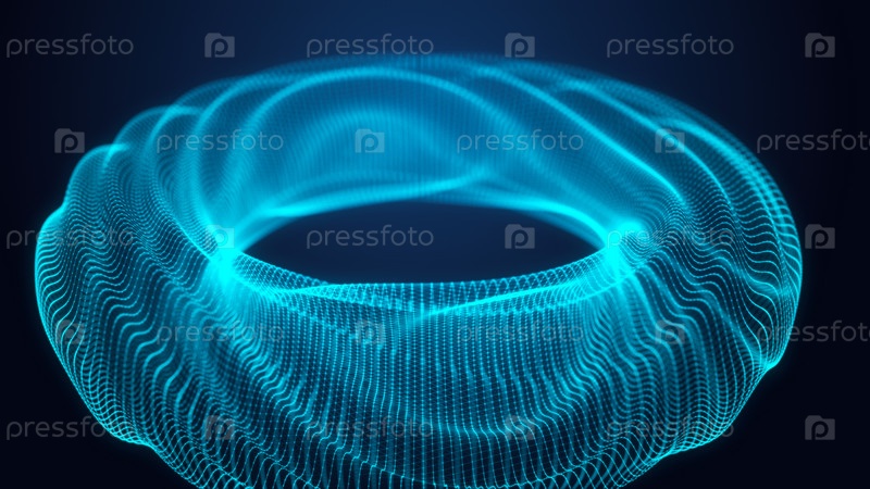 Абстрактная геометрическая фигура из цифровых частиц. Подключение к сети. Большая структура данных из точек, соединенных линиями. 3d визуализация