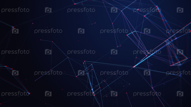 Концепция сетевого подключения с эффектом отказов. Технологический синий фон с линиями и точками. Большие данные. 3d визуализация