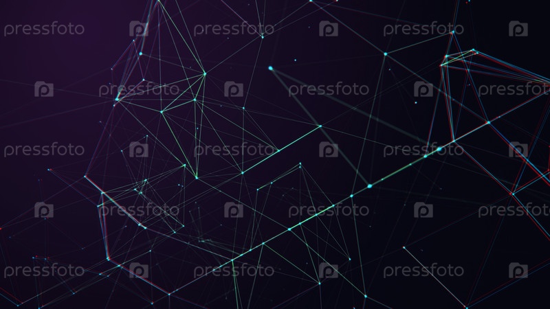 Концепция сетевого подключения с эффектом отказов. Технологический фиолетовый фон с линиями и точками. Большие данные. 3d визуализация