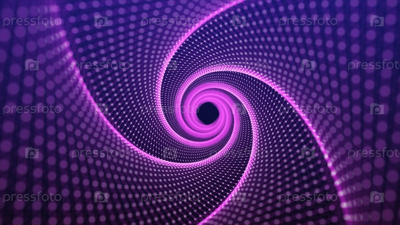 Скрученный туннель кадра, состоящий из соединения розовых точек и линий. Подключение к сети. Структура больших данных. Технология передачи данных. 3d визуализация