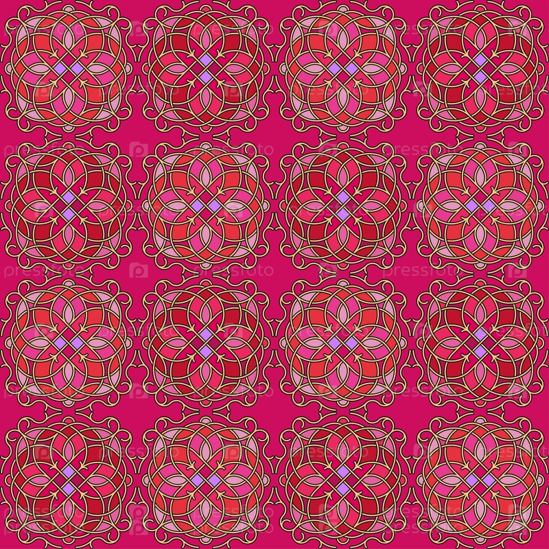 Бесшовный паттерн в неовизантийском стиле на розово-красном фоне