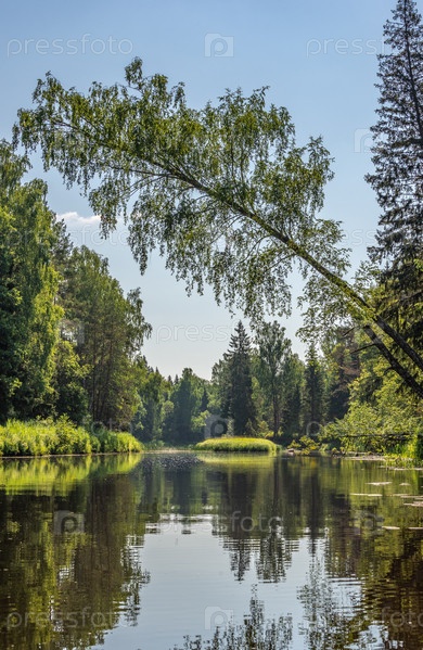 Береза склонилась над лесной рекой