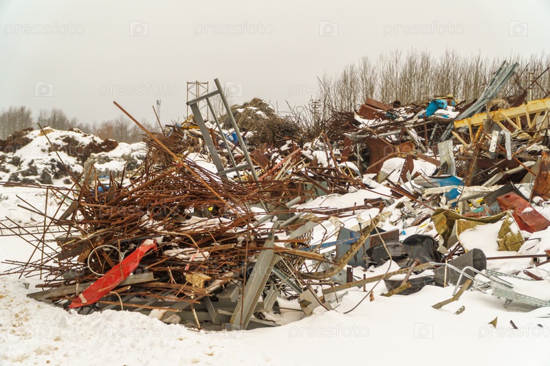 Промышленный металлолом. Отходы человеческой деятельности. Металлолом на свалке