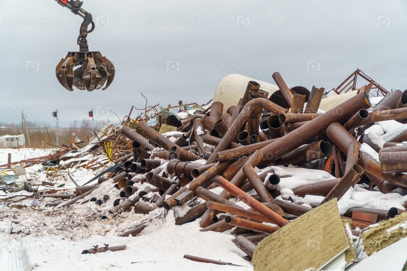 Промышленный металлолом. Отходы человеческой деятельности. Металлолом на площадке переработки