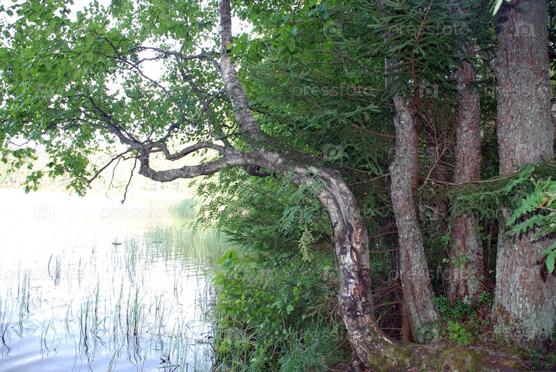 Изогнутое дерево у озера