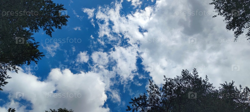 Голубое небо, облака и ветки деревьев