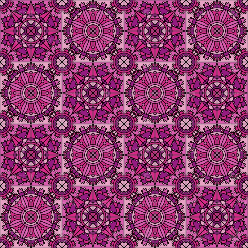 Бесшовный паттерн. Орнамент в стиле Ренессанс. Розовый и фиолетовый цвета