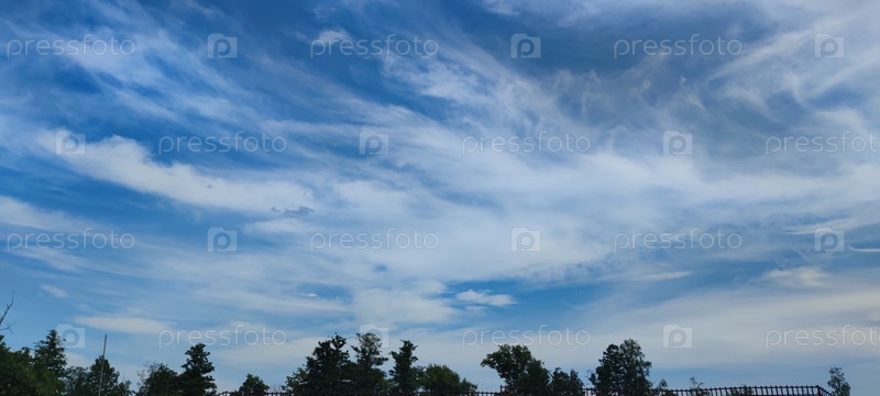 Голубое небо, облака и ветки деревьев