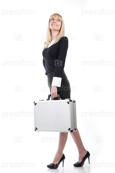 Женщина с кейсом на белом фоне