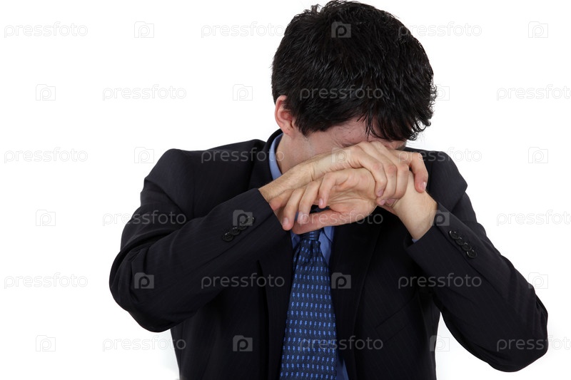 Стыдливый мужчина закрывает лицо