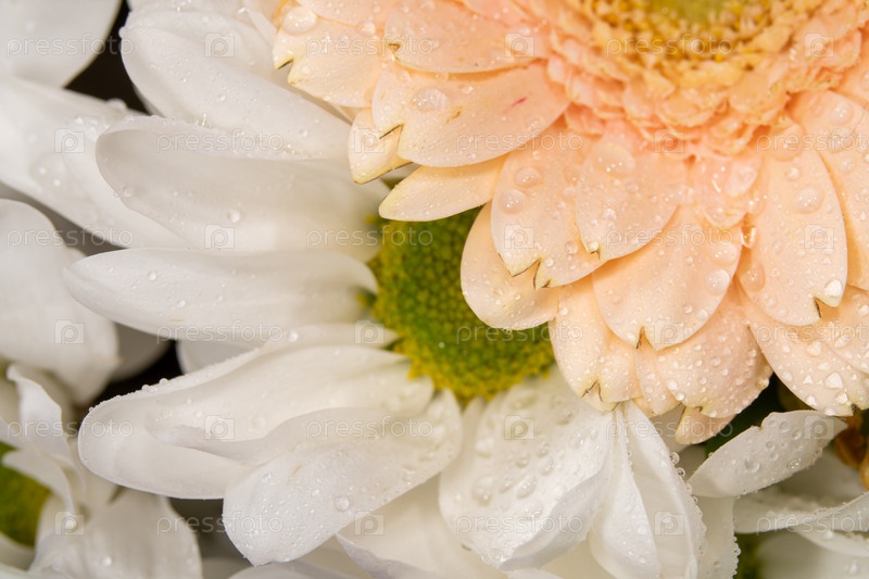 Крупный план цветка с каплями воды. Макросъемка цветка после дождя
