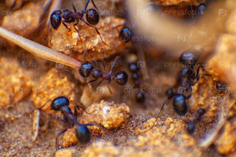 Муравьи крупным планом на естественном фоне