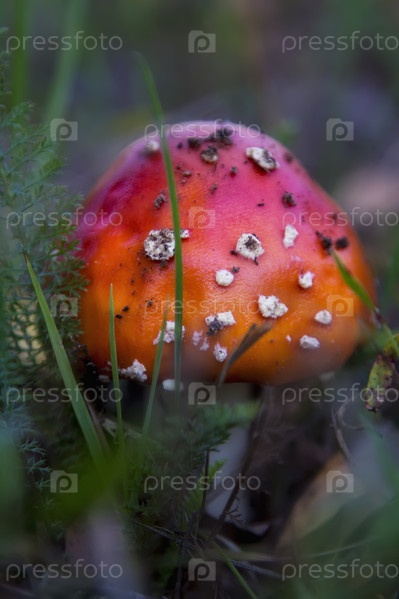 Красивый гриб в лесу. Мухомор красный, ядовитый гриб. Натуральный состав