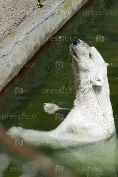 Крупный план плавающего белого медведя, смотрящего в камеру