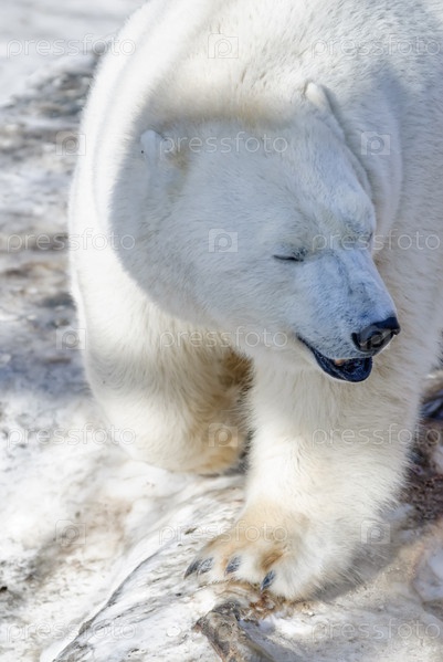 Белый медведь в Екатеринбургском зоопарке в зимний день. Россия