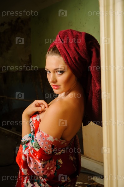 Молодая привлекательная женщина в халате