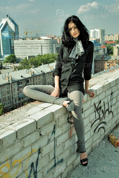 Молодая красивая женщина на крыше в летний день