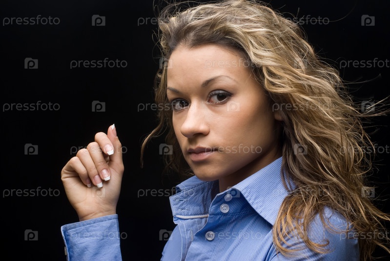 Портрет молодой красивой женщины над черным
