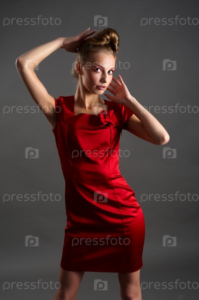 Сексуальная молодая блондинка в красном