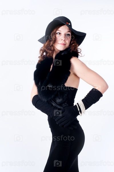 Молодая красивая женщина в стиле ретро на белом фоне