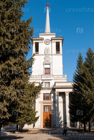 Екатеринбург, Россия - 10 апреля 2010 г.: Фрагмент Общественного центра военного офицера. Он был построен в 1938-1941 годах. До 1946 года он назывался Домом Красной Армии