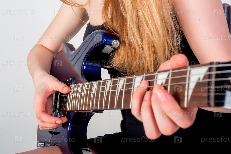 Женщина играет на электрогитаре