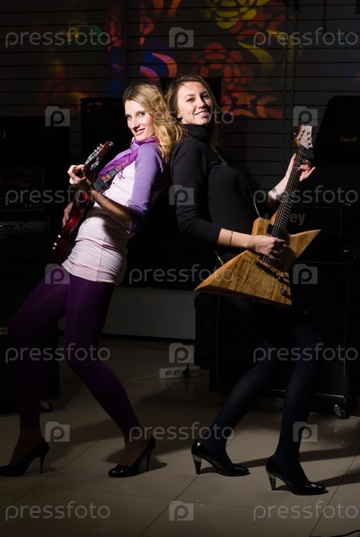 Пара гитаристок рок-группы с электрогитарой